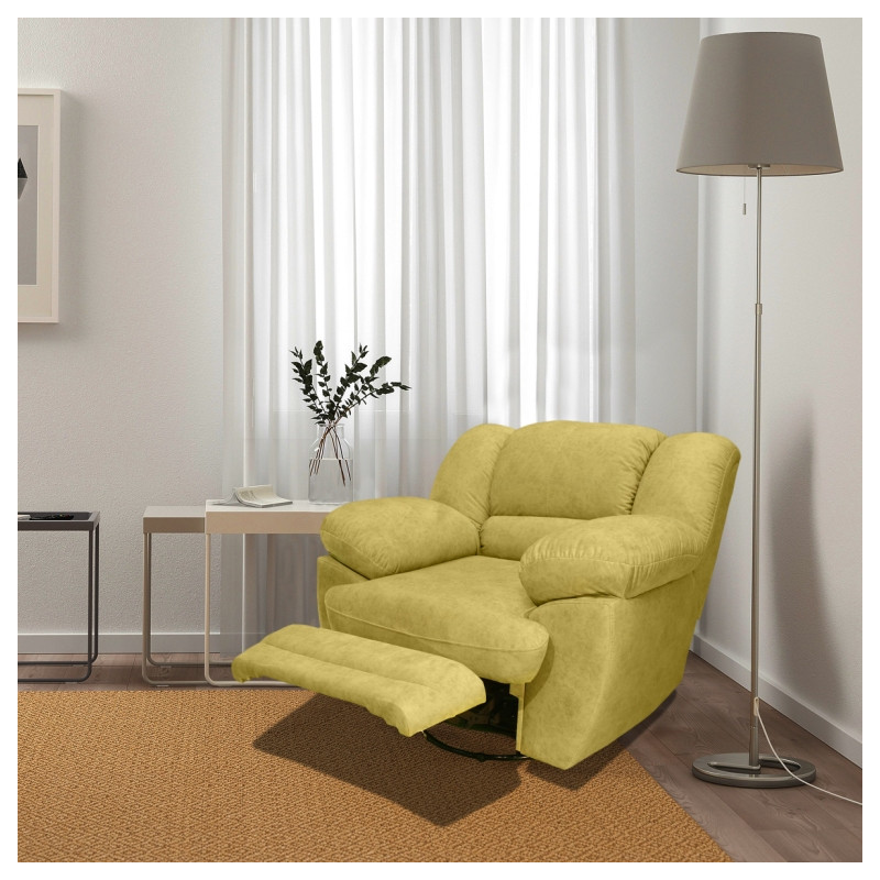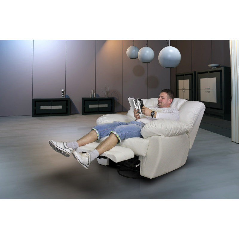Оснащенное особым механизмом - Глайдером, диван легко превращается из обыкновенного кресла в кресло - качалку, именно этот механизм поворачивает модель на 360 градусов, и дает возможность разложить кресло в положение полулежа. Для этого достаточно одного нажатия на механизм - и Вы уже наслаждаетесь великолепным отдыхом лежа. При надавливании позвоночником на спинку, Вы откидываетесь на нее, тем временем выдвигается изящная, но прочная подставка для ног.