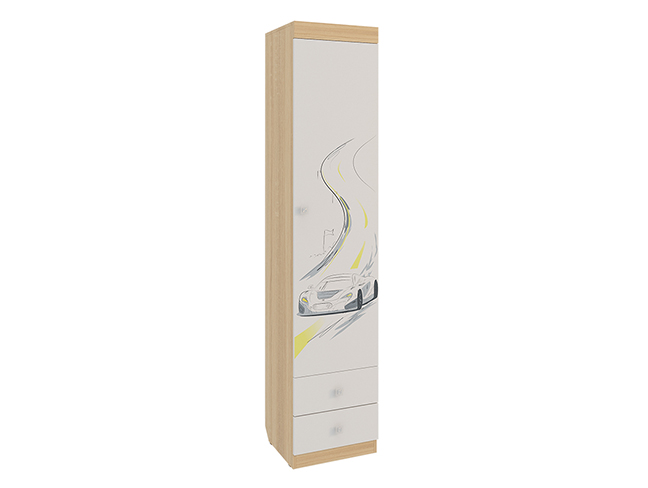 Вместительный шкаф «Форсаж» – мечта каждого мальчика. Штанга для одежды и 2-а выдвижных ящика для белья - отличное решение для детской. Эффектный принтерный рисунок на фасадах выдержан в общем стилистическом решении. Рисунок устойчив к истиранию и ультрафиолету. Рекомендуем комплектовать: с остальными модулями детской «Форсаж»