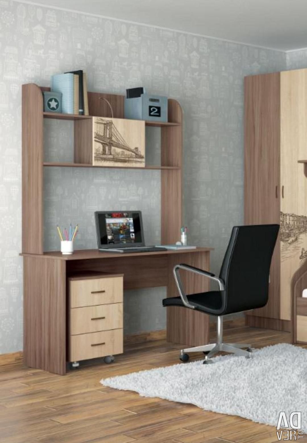 Для организации рабочего места на письменном столе. Включает в себя открытые полки и закрытую секцию с откидной дверкой. Фасад декорирован рисунком (фотопечать)