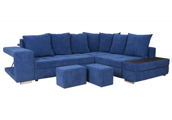 В нишу большого подлокотника встроены два пуфа, которые при необходимости могут использоваться в качестве дополнительных посадочных мест.