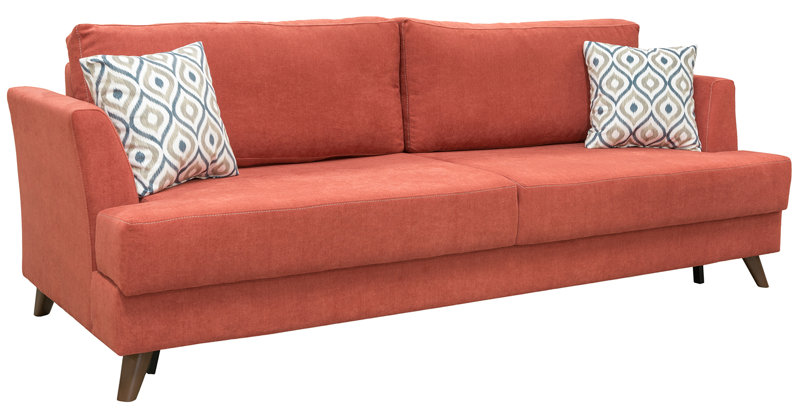 Лаконичный и элегантный диван легко впишется в любой современный интерьер. Из нескольких вариантов обивки вы легко сможете подобрать цветовое решение, подходящее именно вам. Высокие подлокотники и декоративные подушки обеспечивают комфортную посадку.