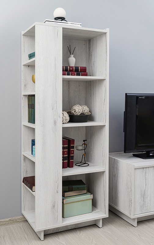 Стеллаж боковой Флекс 26, 600*1540*350мм. На небольшие торцевые полки можно поставить коллекцию книг или сувениров. Такая открытая этажерка дополнит систему хранения в любой комнате: в гостиной, спальне, молодежной и прихожей. Предусмотрена правосторонняя и левосторонняя сборка модуля.